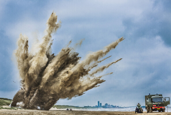 onschadelijk maken van 500-ponder op t strand van Wassenaar