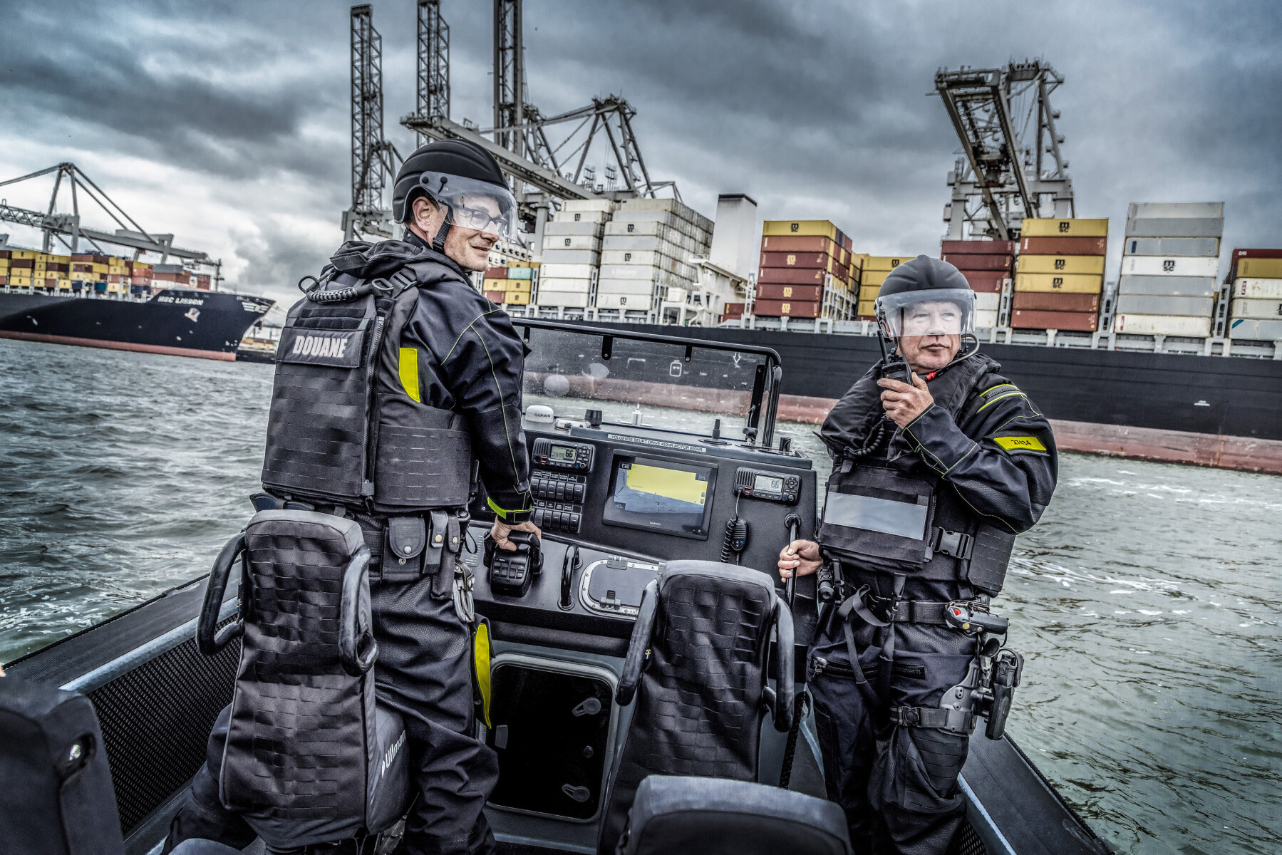 Douane OSODT patrouille in de haven van Rotterdam