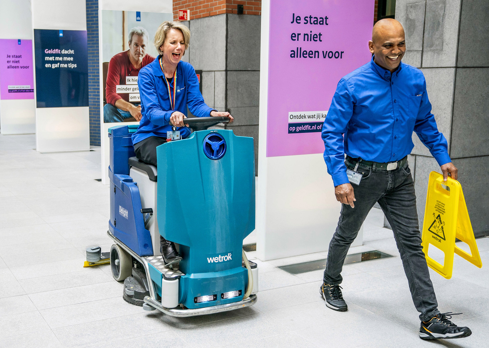 Marieke van Wallenburg secretaris-generaal bij SZW heeft een werkbezoek bij de Rijksschoonmaakorganisatie