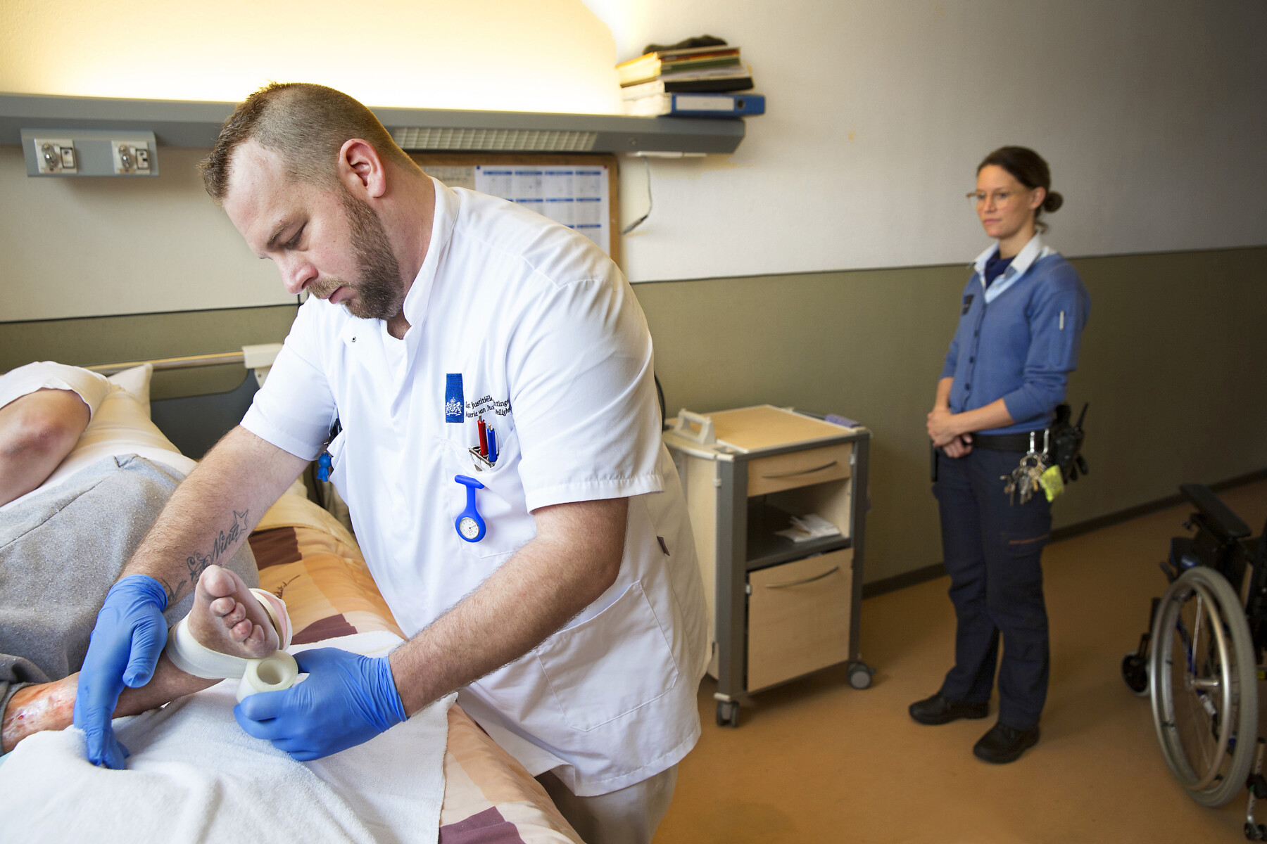 herkenbaar in beeld, de bewaker houdt toezicht. Gefotografeerd voor het ministerie van Justitie en Veiligheid.