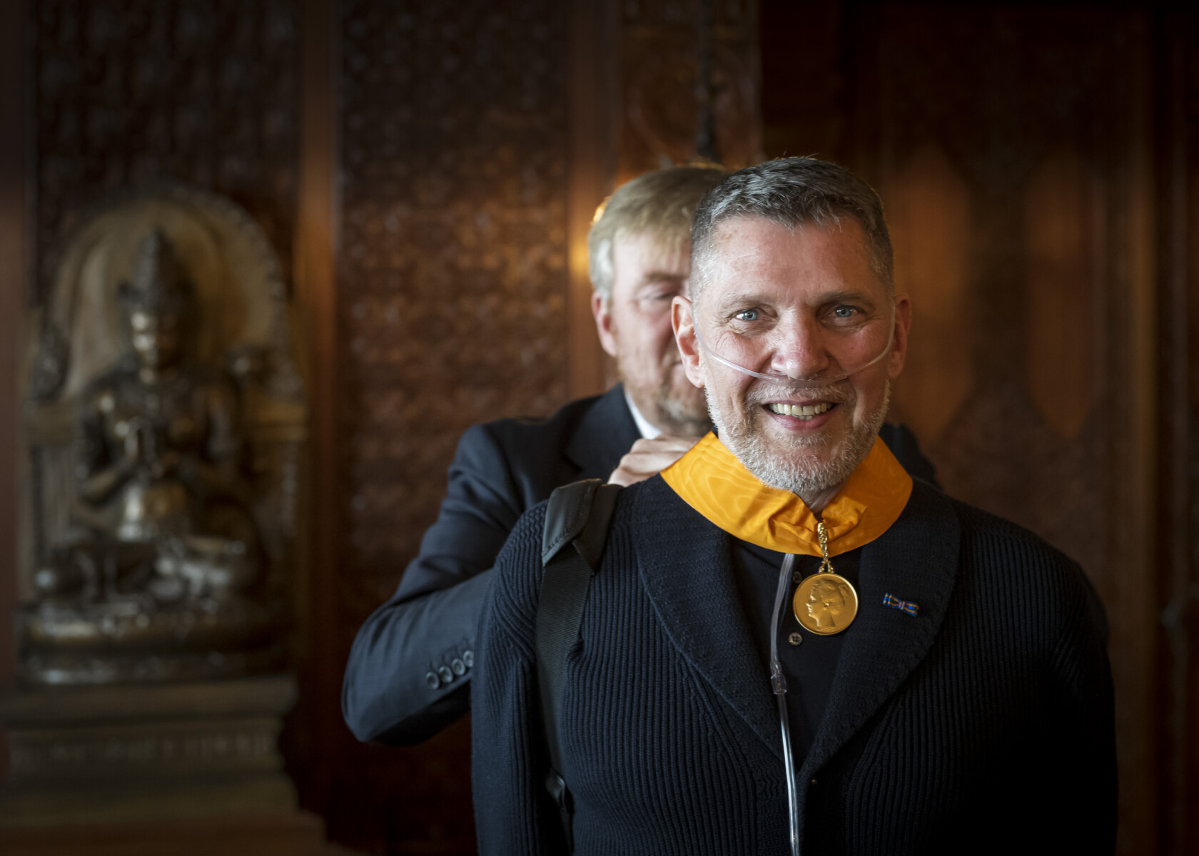 Koning Willem-Alexander reikt op Paleis Noordeinde de eremedaille voor Kunst en Wetenschap van de Huisorde van Oranje uit aan fotograaf Erwin Olaf. De eremedaille wordt toegekend aan personen met uitzonderlijke verdiensten op de terreinen kunst en wetenschap.