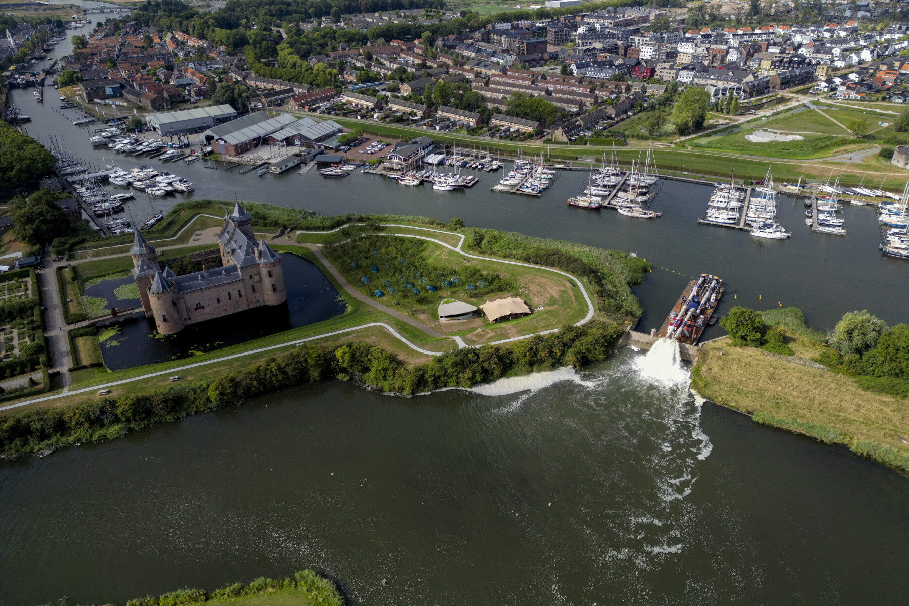 Twee noodpompen voorzien een natuurgebied van vers water