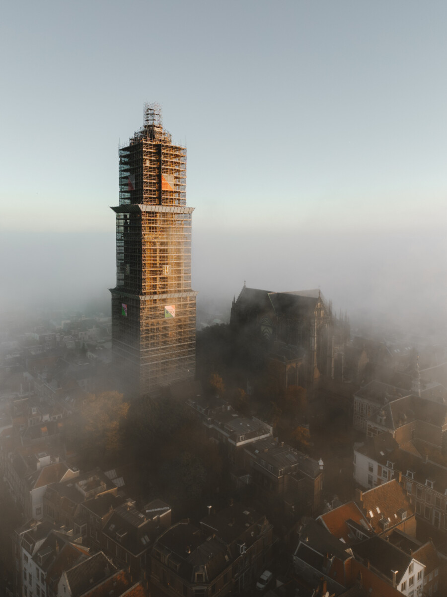 De Domtoren in Utrecht op een mistige ochtend in november.