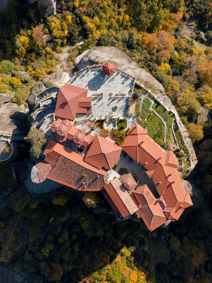 Een klooster van bovenaf in Meteroa, Griekenland.