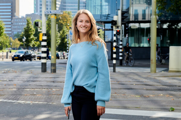 portretfoto van Rijkstrainee voor arbeidsmarktcommunicatie. De foto is onderdeel van een serie foto’s op diverse locatie’s. De foto wordt gebruikt voor oa de website van Werken voor Nederland