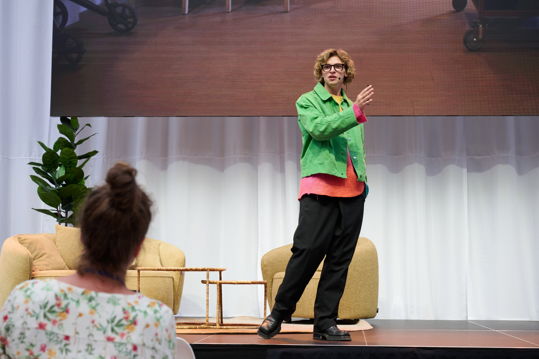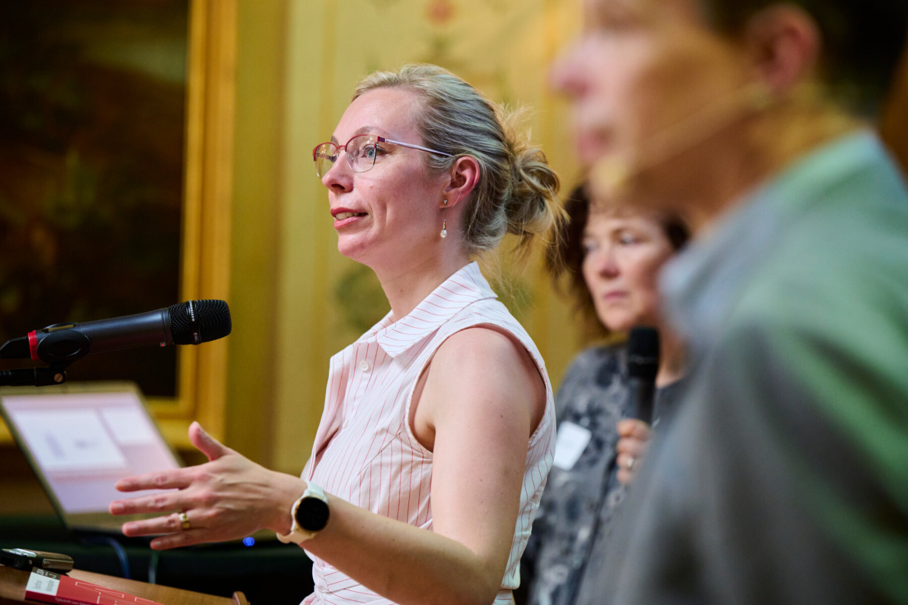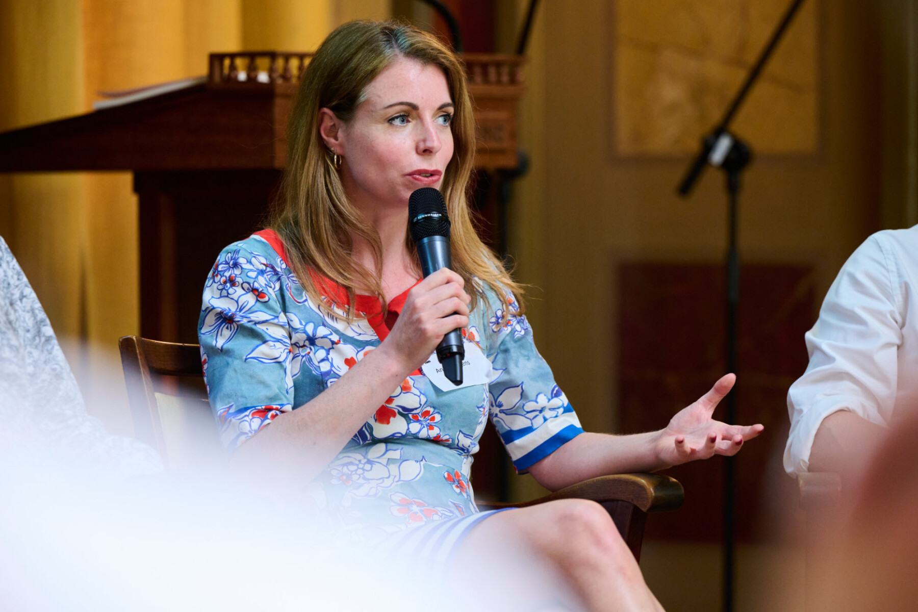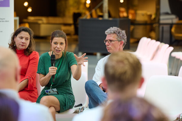 Lisa Westerveld tijdens een discussie op het Kenniscongres van de Nederlandse GGZ